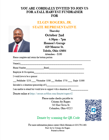 You are corfdially invited to join us for a Fall Harvest Fundraiser for Elgin Rogers, Jr., State Representative
