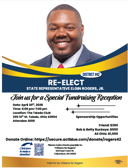 Join us for a Special Fundraising Reception in support of our District #42 Ohio State Representative, Elgin Rogers, Jr.