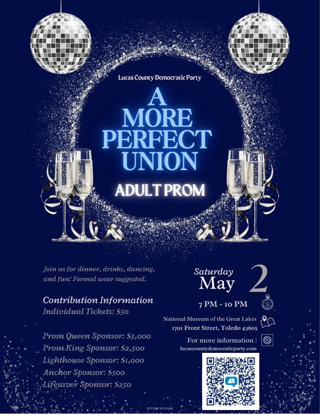 A MORE PERFECT UNION ~ ADULT PROM Saturday, May 2, 2026 7:00 PM 10:00 PM 19:00 22:00 National Museum of the Great Lakes 1701 Front Street Toledo, OH, 43605 United States (map) Google Calendar ICS
